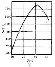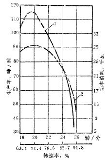 于71~75%范圍內(nèi)磨機的處理能力更高,轉(zhuǎn)速率低于或高于這個范圍時處理能力便趨于降低。磨機輸入功率與轉(zhuǎn)速率的關系和生產(chǎn)率與轉(zhuǎn)速率的關系相似,按磨碎每噸產(chǎn)品的動力消耗計,則一般隨轉(zhuǎn)速率降低而減少。
