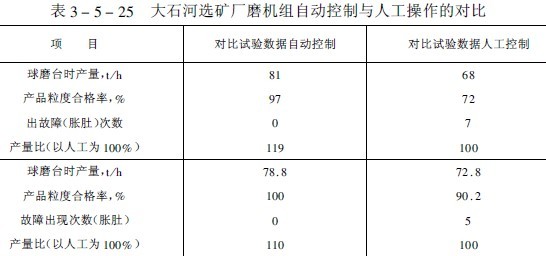 據(jù)國外報導磨礦回路自動控制可提高產(chǎn)量2.5~10%處理一噸礦石可節(jié)省電能0.4~1.4千瓦·時(見表3-5-24)。