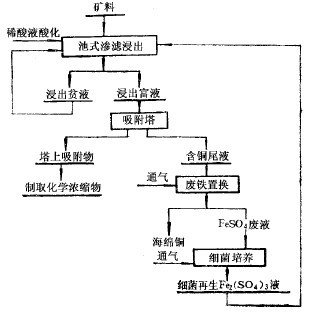 幾年來的生產(chǎn)實踐證明,硫酸-細菌浸出貧礦石的工藝,可以綜合浸出礦石中的銅和稀有金屬,回收率較高、操作簡便、設備少、成本低,是一個變廢為寶、化害為利、綜合利用礦產(chǎn)資源的有效途徑。