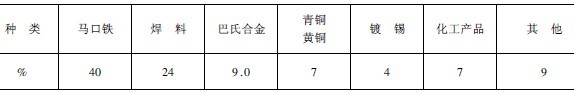 據(jù)統(tǒng)計(jì),目前錫的主要用途和所占比例列于表1。