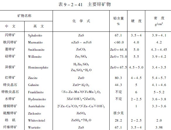 主要鉛、鋅礦物列于表9-2-40和9-2-41。