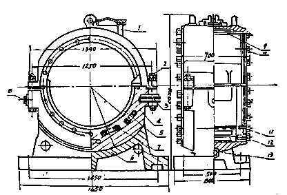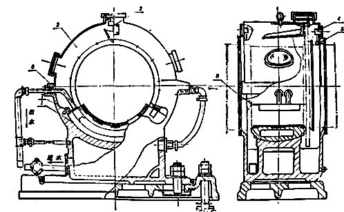 當(dāng)中空軸回轉(zhuǎn)時,在環(huán)行槽內(nèi)充滿了潤滑油則同樣起密封作用,潤滑油沿著油管9進入軸承,油管一端封閉,下部壁上分布許多小孔,潤滑油通過這些小孔,沿著回轉(zhuǎn)中空軸均勻分布,用過的油,由軸瓦下部接管12和與其相連的集油管而流入循環(huán)油系統(tǒng)的過濾裝置。